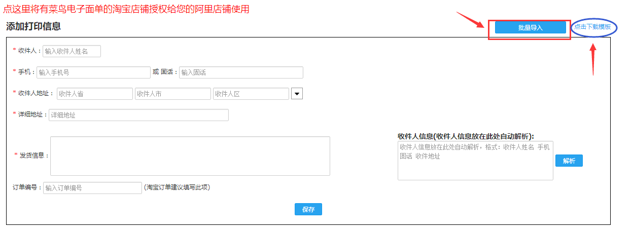 使用方法:首先下载模板,看蓝色框起来的文字,点击下载模板,按照模板的格式填写信息,这个你打开下载的模板后可以看到。
