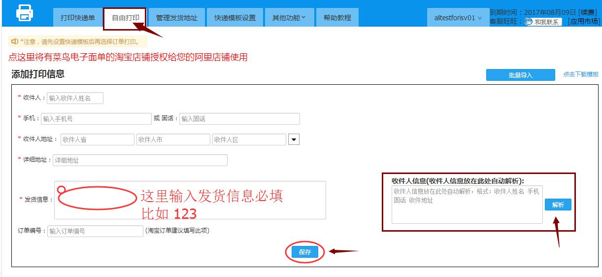 你可以看到上图的界面,右侧可以粘贴收货地址,一键解析自动填写地址,解析后请查看是否有错误的地方核对一下。