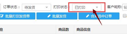 选择:已打印 你就可以看到刚才打印过的订单