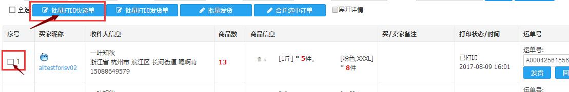勾选订单,选择批量打印 点击 你就会看到下图