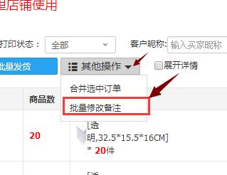 其它操作  点击可以看到 下了 修改备注,请先选中订单后再修改备注!