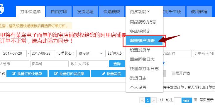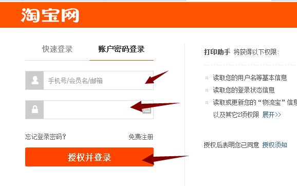 看上图 输入你开通电子面单的淘宝账号 点击授权并登录 会看到下图
