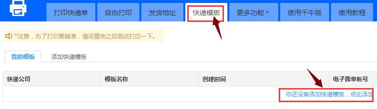 如果你授权没有开通电子面单的账号你会看到下面的图片;