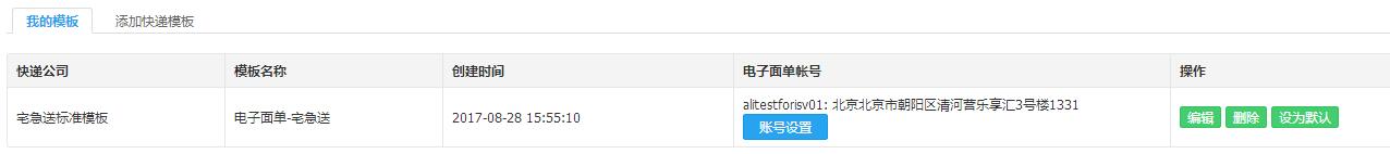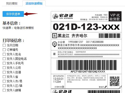 填写模板名称 比如 宅急送 保存 下就行 ,保存后你会看到你刚才设置的模板 如下图: