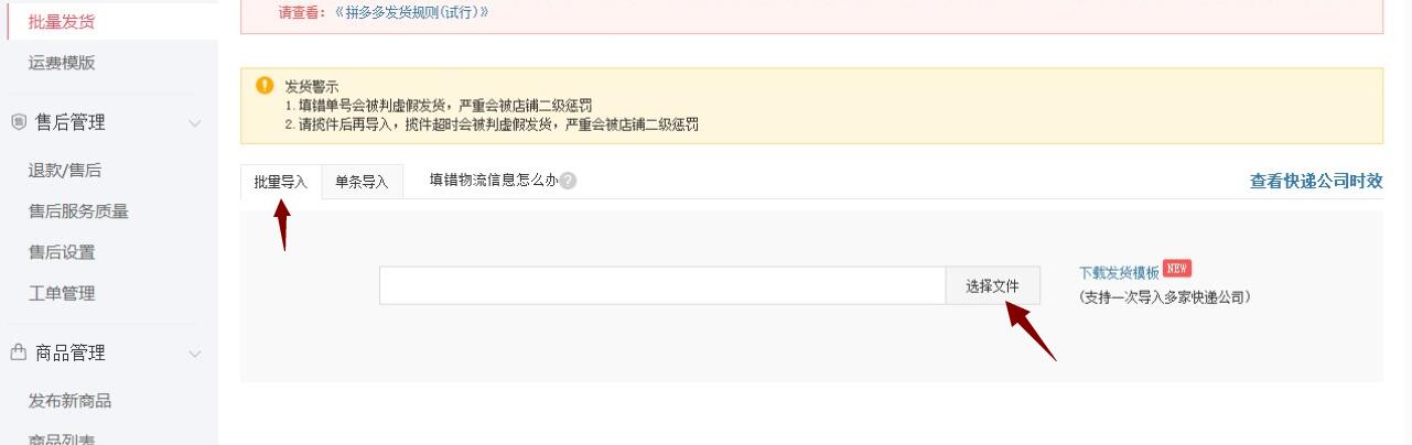 将你刚才导出的发货文件上传到拼多多的后台就可以了 拼多多上传后台如下图