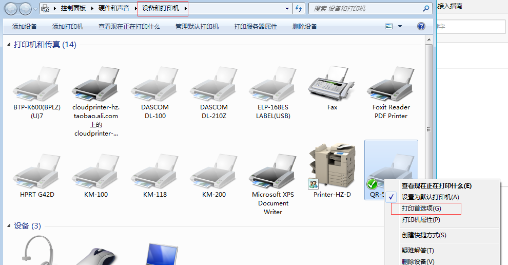 方法一:电脑–设备与打印机–选中使用的打印机,右键–打印机首选项