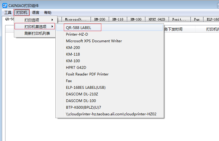 方法二:组件主界面–打印机–打印首选项–选中使用的打印机