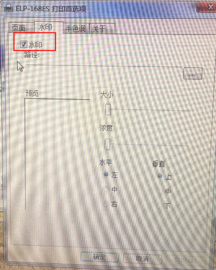 4.以ELP-168ES为例,这台打印机的首选项,需要设置两个地方,设置半色调为“扩散”或“误差扩散”,水印的属性勾选上,即可支持水印的打印了。具体如下图: